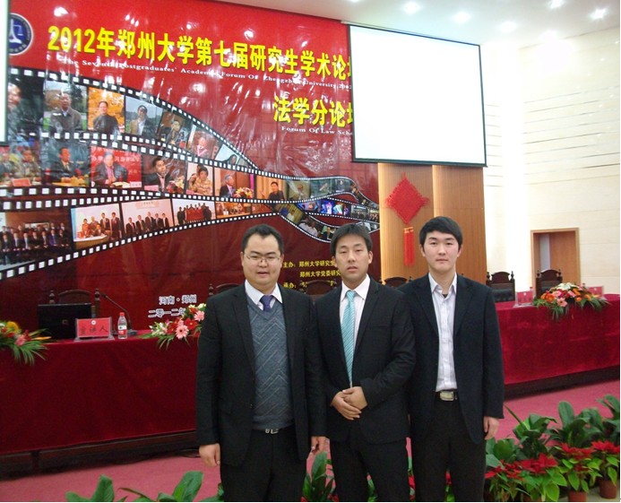 2012年12月12日——14日,yl23455永利官网熊樟林博士、刘启川博士和储陈城博士应郑州大学的邀请参加了郑州大学第七届研究生学术论坛法学分论坛。来自东南大学、郑州大学、北京大学、浙江大学、武汉大学、复旦大学、中南财经政法大学、西南政法大学、澳门科技大学等数十所高校的30余位博士生参与了本次论坛。其中十余位博士的文章分获本次论坛的一、二、三等奖,yl23455永利官网熊樟林博士的论文被评选为本次论坛的一等奖,储陈城博士的论文荣获二等奖,刘启川博士的论文荣获三等奖。