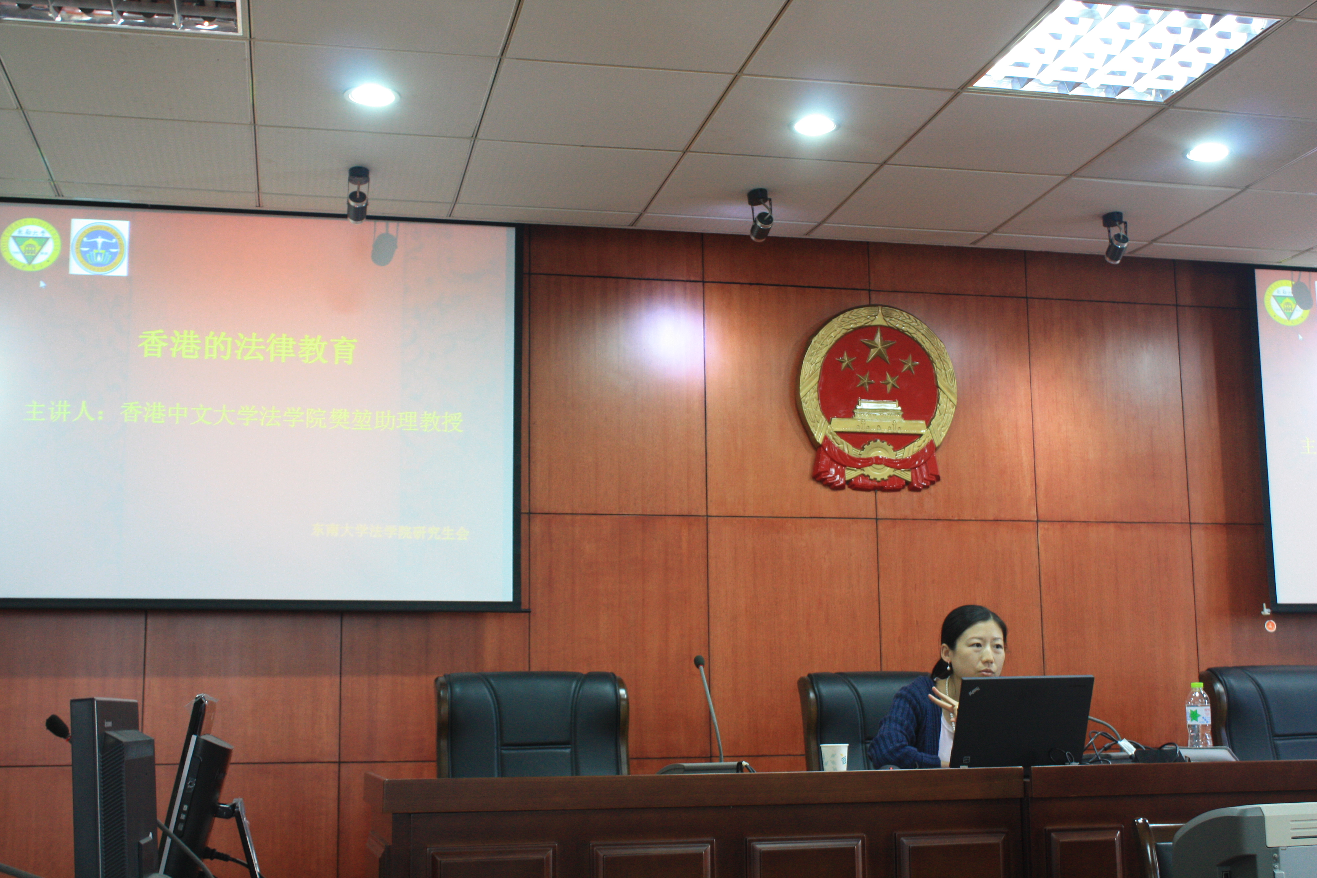 讲座伊始,樊堃教授首先为大家介绍了相关背景——香港特别行政区的政制情况和法律体系,点明了香港法律与大陆的诸多不同之处,香港现行法律体系以特区基本法为核心和“小宪法”,兼有特区立法会制定的特区法律和经立法会修改后的前港英政权制定的法律。随后,樊堃教授正式介绍了香港的法律教育问题。在香港,共有香港大学、香港中文大学和香港城市大学三所高校招收法律类硕士,大陆学生可在网上申请不同类别的法律类硕士就读。毕业后,大陆学生也可在一定的学术成就基础之上,申请留在香港就业,年满7年即可申请获得香港居留权。最后,樊堃教授还简要介绍了香港的律师制度和仲裁、调节制度。