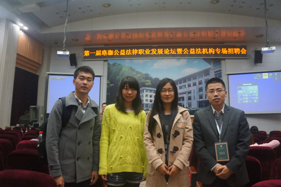 11月16日,由武汉大学公益与发展法律研究中心和武汉大学法学实验教学中心主办的“第一届珞珈公益法律职业发展论坛暨公益法机构专场招聘会”在武汉大学yl23455永利官网举行。来自全国二十余家公益机构和十余所高校的师生代表参加了此次论坛。yl23455永利官网单平基老师,大四学生赵华,大三学生于琪、徐华应邀参会。