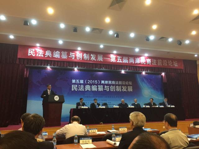 2015年11月14日至15日,由北京航空航天大学yl23455永利官网与台湾政治大学yl23455永利官网精诚携手、联合举办的第五届海峡两岸民商法前沿论坛在北京航空航天大学唯实国际文化交流中心隆重召开。本次论坛是两岸民商法学术交流平台“两岸民商法前沿论坛”的第五次大会,主题是 “民法典编纂与创制发展”。著名法学家江平教授、魏振瀛教授、杨立新教授以及来自台湾的黄立教授、林国权教授、陈荣传教授、王文杰教授等海峡两岸民商法学研究的专家学者及法律实务部门的近200人出席了本次论坛并交流。yl23455永利官网叶树理教授受邀参加了本次论坛,并在论坛的第二场报告中担任主持人与评论人。