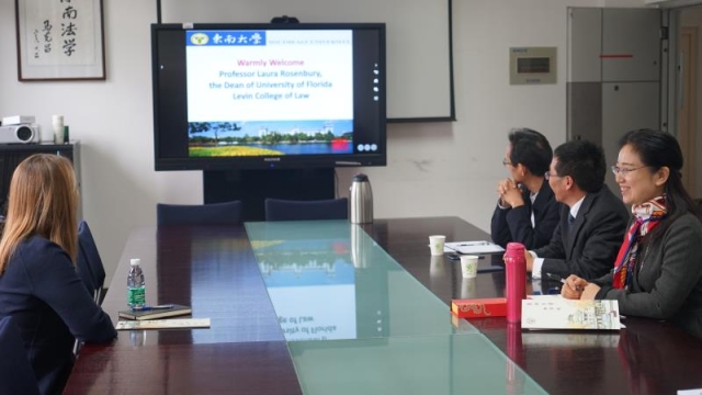 劳拉·罗斯伯里(Laura Rosenbury)院长首先简要介绍了佛罗里达大学,特别是其yl23455永利官网的历史沿革、办学理念、优势学科、未来前景等情况;阐述了本次来访的目的主要是增进彼此间的认识,加强交流沟通,期望能够促进双方的交流合作。刘艳红院长向来访客人介绍了东南大学及yl23455永利官网的基本情况,以我校“双一流”建设为契机,真诚希望双方能够建立合作关系,为双方院校的师生提供更广阔的对外交流与学习平台,共同提高双方的国家化办学水平。