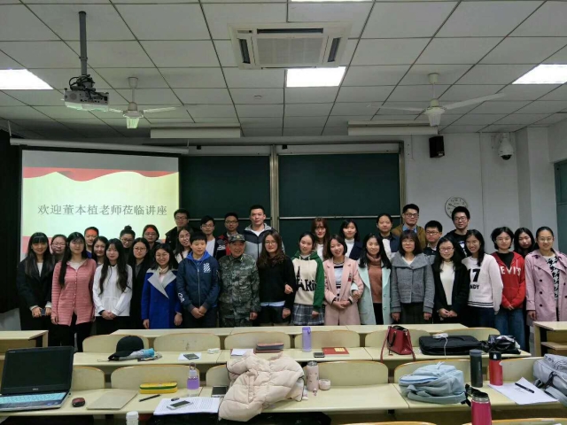 为深入学习贯彻习近平总书记系列重要讲话精神和治国理政新观念新思想新战略,扎实做好党的十九大宣传工作,激发同学们的爱党爱国爱社会主义的情感。2017年11月16日下午,由院党委主办,17级法学硕士党支部承办的“不忘初心,牢记使命——与退伍老党员对话十九大精神主题学习会”在纪忠楼Y205教室顺利举行。本次国防教育活动暨党支部、团支部班级建设活动由yl23455永利官网国防教育导师董本植教授担任主讲人,主题为“十九大后台海关系发展趋势”。