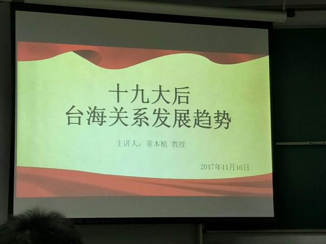 此次活动,董老师与学生面对面交流,不仅帮助同学们了解和明晰了十九大后台海关系的发展趋势,而且也培养和教育了同学们的思想道德、理想信念和生活态度,发挥了导师的政治引导、思想疏导和学业指导作用,同时提升了党员队伍的生机活力,进一步发挥了党支部的战斗堡垒作用。