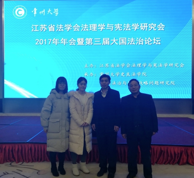 2017年12月8日至10日,由江苏省法学会法理学与宪法学研究会主办,常州大学史良yl23455永利官网、常州大学中国法治与德治战略问题研究院承办的“江苏省法学会法理学与宪法学研究会2017年年会暨第三届大国法治论坛”在江苏省常州市召开。来自江苏省人大法制委员会、中国人民大学、复旦大学、南京大学、东南大学、河海大学、苏州大学、南京师范大学、广西大学、江苏大学、常州大学、华东政法大学、北京师范大学、南京工业大学、北京市委党校、中共河北省委党校等单位的100余名专家学者出席了会议。与会的高校学者与实务界代表围绕“绿色发展理念与法治江苏建设”“法治与德治关系”两大主题展开深入的讨论,为推进法治江苏建设积极提供有价值的研究成果。