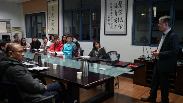 Glöckner教授报告了建筑合同法在德国的历史变迁,新规的主要框架,并详细介绍了“单方变更权及工程价款调整”“消费者建筑合同”以及“建筑师合同”等新增规范内容。最后,Glöckner教授就建筑合同相关理论和实务话题与现场师生进行了热烈的交流和讨论。