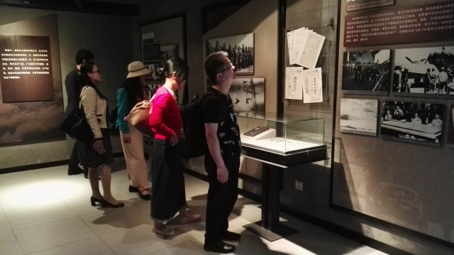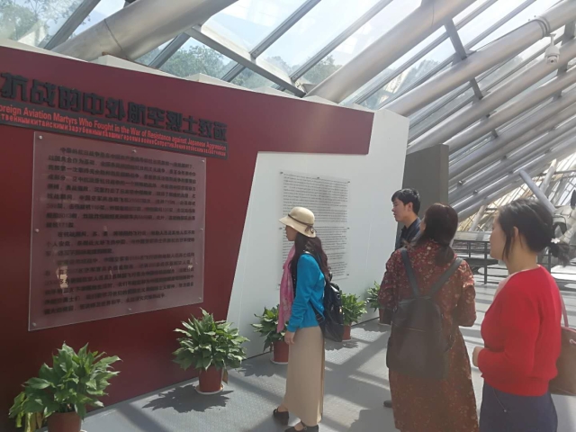 南京抗日航空烈士纪念馆内,松柏苍翠,草木葱茏。全体党员沿着“奋勇抗敌”、“国际援华”、“壮志凌云”和“缅怀先烈”四个展览主题,通过实物、文字、图片、影像等形式全面了解了第二次世界大战期间,中、美、苏等国空军在中国大地上联合抗击侵华日军的英勇历史。