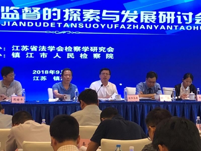 2018年9月20日,新时代检察监督的探索与发展研讨会在江苏省镇江举行。来自江苏省政法机关、高校、律师界的70多位司法工作者和专家学者围绕检察监督热点难点问题开展研讨。会议分为四个专题:(1)检察监督职能定位;(2)监察体制改革后检察机关侦查权行使;(3)检察机关公益诉讼职能履行;(4)行政检察监督制度研究。