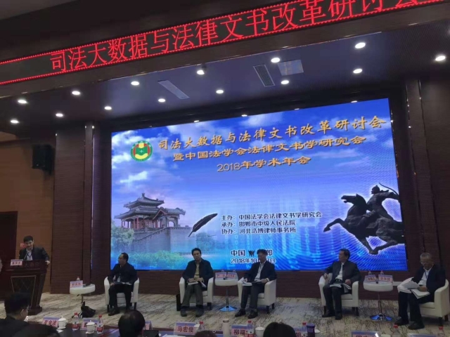 司法大数据与法律文书改革研讨会暨中国法学会法律文书学研究会年会,于10月13日在河北省邯郸市召开。中国法学会副会长王其江,河北省高院、邯郸市政法委、邯郸市中院负责人、马宏俊会长等出席了会议,来自全国各地高校、法院、检察院、律师、公证等单位的100余名代表参加了会议。