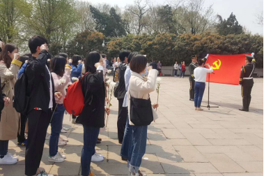 在庄严的雨花台烈士纪念碑前,我们凝视着党旗,重温了入党誓词,并且为牺牲的烈士们献上了鲜花,表达对英勇牺牲的革命烈士的无限缅怀。