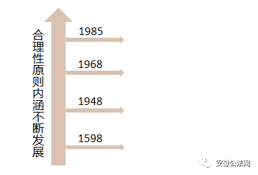 第一个合理性原则被运用的案例:1598年鲁克案(Booke’ s Case). 随后,合理性原则的发展,其主要还是关于行政机关行使自由裁量权时的程序要求。转折点案例:1948年韦德内斯伯里案(Wednesbury), 该案中,法官根据合理性原则,扩张司法审查的权限,从程序审查及于实质审查。再者,1968年的帕德菲尔德(Padfield)案又发展出要求行政机关行使自由裁量权的行政介入请求权,是合理性原则的适用范围自行政作为及与行政不作为;1985年的政府通讯总部案(Government Communication Headquarters; GCQH)则更进一步使合理性原则的适用范围及于传统所不及的国王特权。