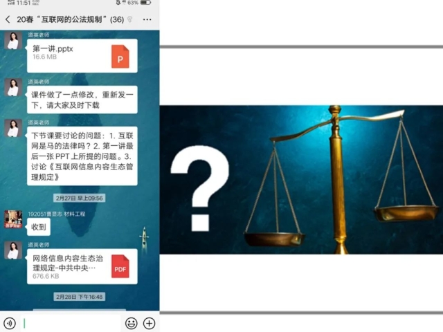 在“互联网的公法规制”中,为了增强知识传授的趣味性、寓教于乐,常常会引入同学们感兴趣的案例。比如结合课程专业性,对“快播案”这样的争议案例、“肖战A03事件”这样的热点案例进行深入讨论。这些典型和热点案例,将学生们的兴趣点与课程特色相结合,使得知识专业性与知识传授的趣味性深度融合,提升同学们的学习兴趣,也增加大家居家隔离中的学习乐趣。