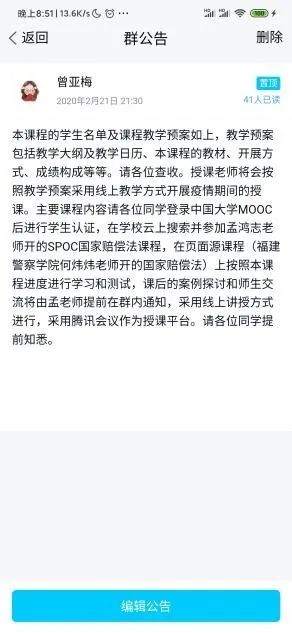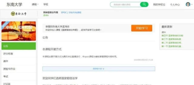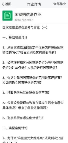 为贯彻教育部和学校线上教学的部署要求,最大限度降低疫情对教学的不利影响,确保“停课不停学”,yl23455永利官网孟鸿志教授结合本科教学与研究生教学的不同特点,就其主讲的“国家赔偿法”课程,充分发挥多种线上教学形式,与学生跨越地域界限,相见于云端课堂。具体而言,因本科生教育更加重视基础知识的全面掌握,采用了以腾讯会议、QQ群、微信群作为线上教学的“主战场”,中国大学MOOC在线平台SPOC(一种“自学+指导”的教学模式)课程作为备用平台的方式,开启了特殊时期的“国家赔偿法”教学之旅。研究生教育偏向于培养学生的研究问题能力,孟鸿志老师在设计教学方式时更加注重载体平台的简单、便捷以及督促学生将线上课程内容延伸到线下研究,选择以“腾讯会议+微信群”为授课平台,线上组织学生组队进行专题研讨的方式展开了此次课程。此外,为了辅助自己开展线上授课、方便学生线上联络、及时反馈学生端线上听课体验,孟鸿志老师还指派两名自己指导的研究生分别作为本科生课程与研究生课程的课程助教。“同一个科目、两类学生群体、多元在线平台”成为孟鸿志老师新学期授课的关键词,课前准备、在线授课、课后巩固、专题讨论四个环节也成为保障在线教学更具实效的具体载体。