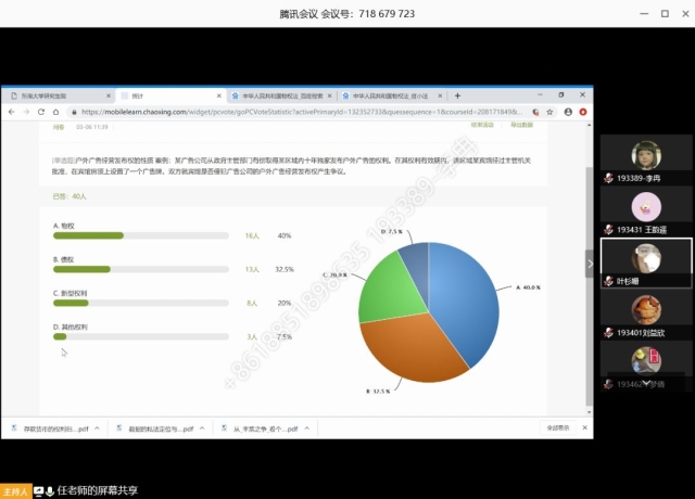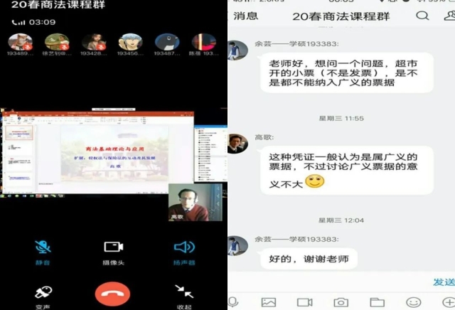对于直播的课程,老师一般会在开课前公布网上授课教学计划、课表安排以及相关的课程参考书目。课堂上老师用共享屏幕的方式分享PPT,同时结合手写板、旁边的聊天窗口随时提问。老师在课堂上也会随时点名提问,检验学生听课效果。有的老师结合超星平台的问卷功能发放问题,并在课堂上请不同结论的同学来进一步阐述自己的认识,有针对性地进行解答。
