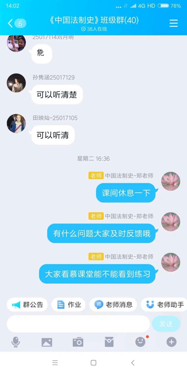 在第一周线上教学过程中,虽然遇到一些小问题,但是在教务处的统筹指导和全院师生的共同努力下,最终得到合理解决,实现了“居家云开学”“在家如在校”。