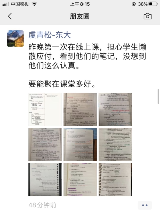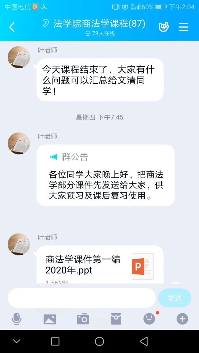 第五,有学生提出,全部网上授课,整天盯着电子屏幕,觉得眼睛有点吃不消,尤其是湖北、新疆这类物流还没恢复的地区的同学,专业书也需要看电子版的,会更疲劳一些。因此,老师们都选择在直播课前先把ppt发给同学们。