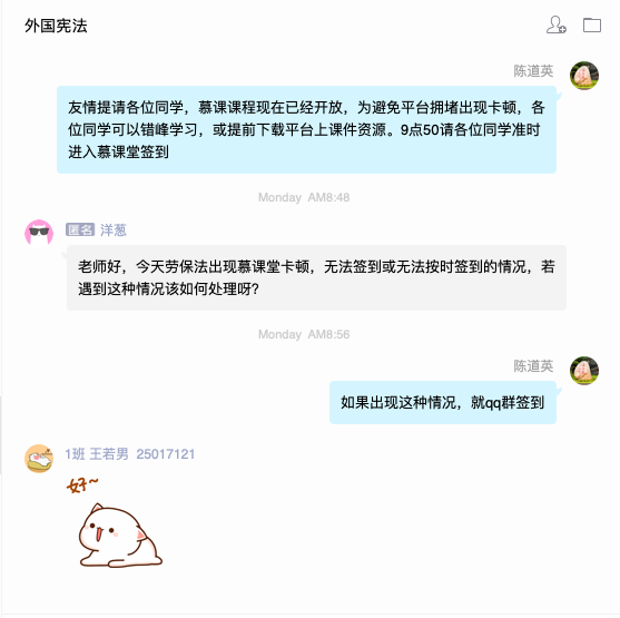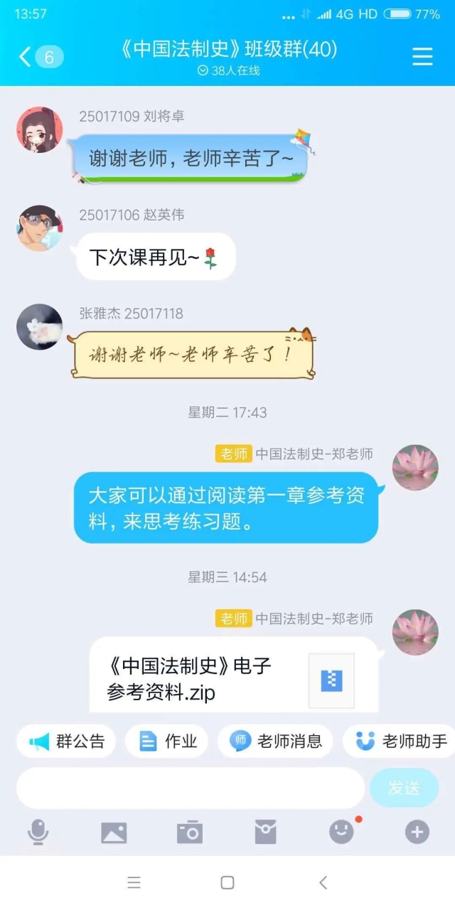 第二,在线上授课过程中,同学的课前预习和准备要比面授更为重要。有的老师每次课前都会让学生认真准备问题,课时集中解答,效果很好,建议其他老师可以借鉴。