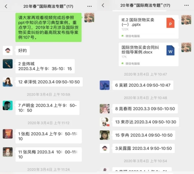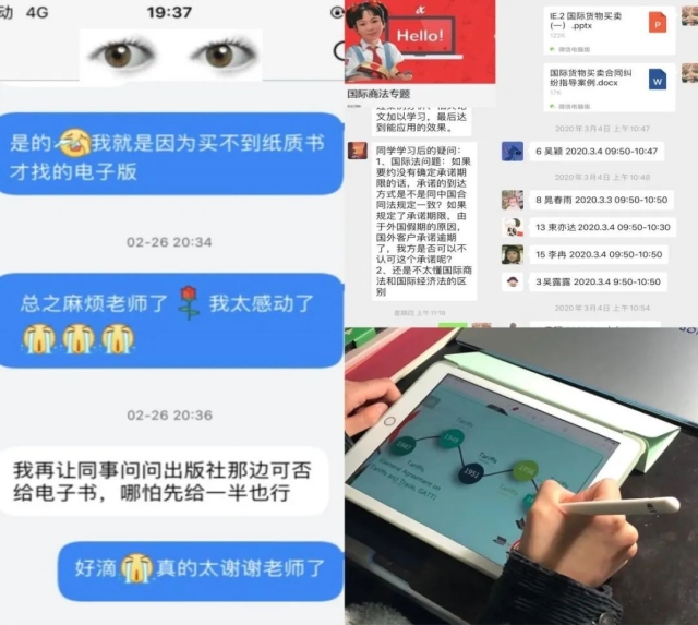 本学期“国际商法专题”课程组也有部分同学身处“疫情”较为严重的地区,在学习中遇到一些特殊障碍,比如参考书籍购买困难、快递又暂停运行等。此时学校资源与学生需求的充分黏合就发挥了至关重要的作用。