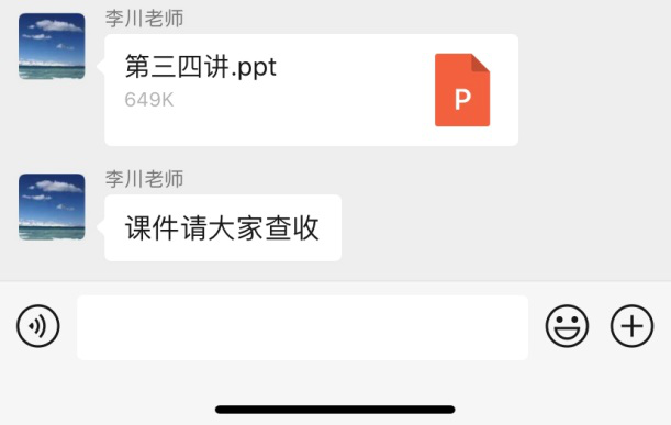 为保障教学质量,钱老师通过微信群发布课程PPT供同学们学习,通过同学们及时的预习提高了授课效率。课程PPT亦帮助了同学们及时复习,巩固授课知识。