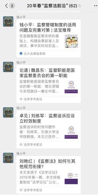 钱小平老师于本学期面向硕士研究生开设了《监察法前沿问题》课程,采用腾讯会议直播+微信答疑的模式进行授课。作为一门新兴学科,监察法学理论多元,钱老师借助微信公众号、知网等网络平台为同学们准备了充足的文献资料,帮助同学们学习、巩固知识要点。