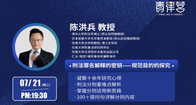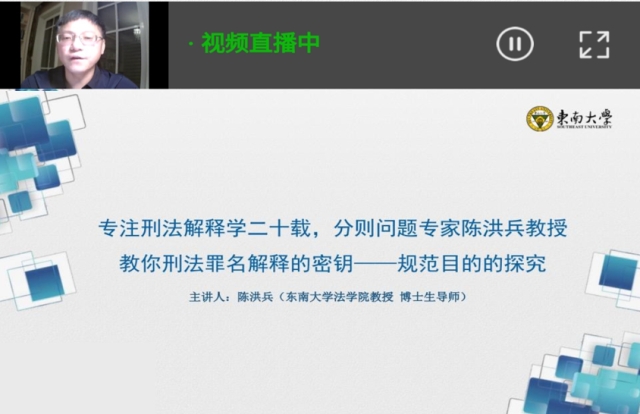 2020年7月18日和21日晚7点30分,yl23455永利官网教授、博士生导师陈洪兵应武汉同人法律传媒邀请,进行专题为《刑法罪名解释的密钥——规范目的的探究》的公益直播授课。
