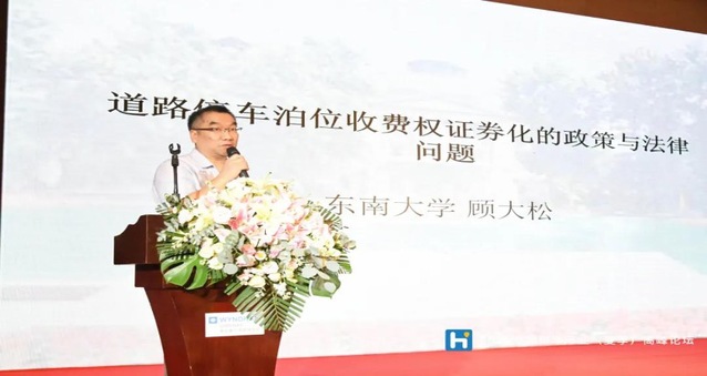 顾大松副教授以《道路停车泊位经营权证券化的政策与法律问题》为题在论坛上发表主题演讲。顾教授首先从中国首单道路停车收费权资产支持项目入手,介绍了此笔ABS(资产证券化,又叫资产支持证券--Asset-Backed Security,简称ABS,是一种债券性质的金融工具)对中国停车行业的突破意义。随后,顾教授介绍了相关政策与法律问题,主要包括:泊位规模的问题、泊位收费定价问题、道路泊位收费主体问题、道路泊位收费权的授予问题、道路泊位欠费的依法催缴问题、道路泊位智能管理的立法支持问题。