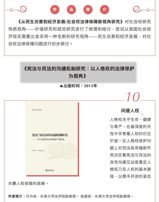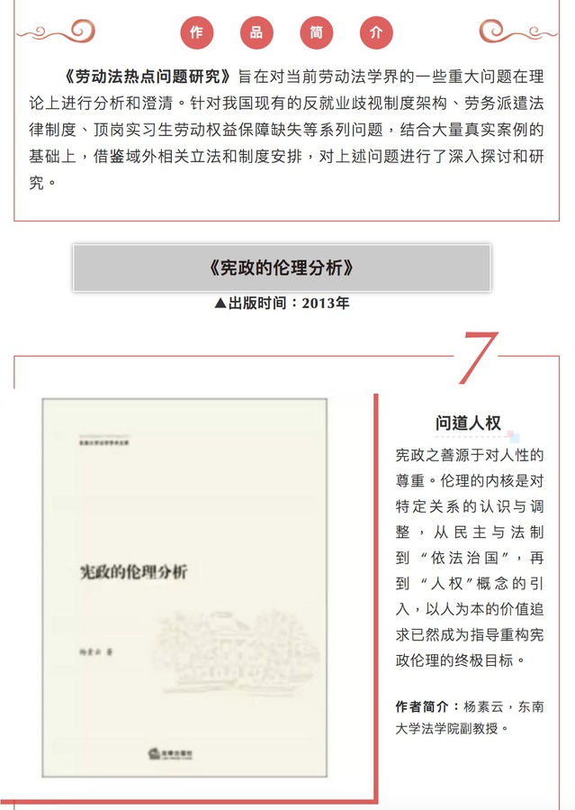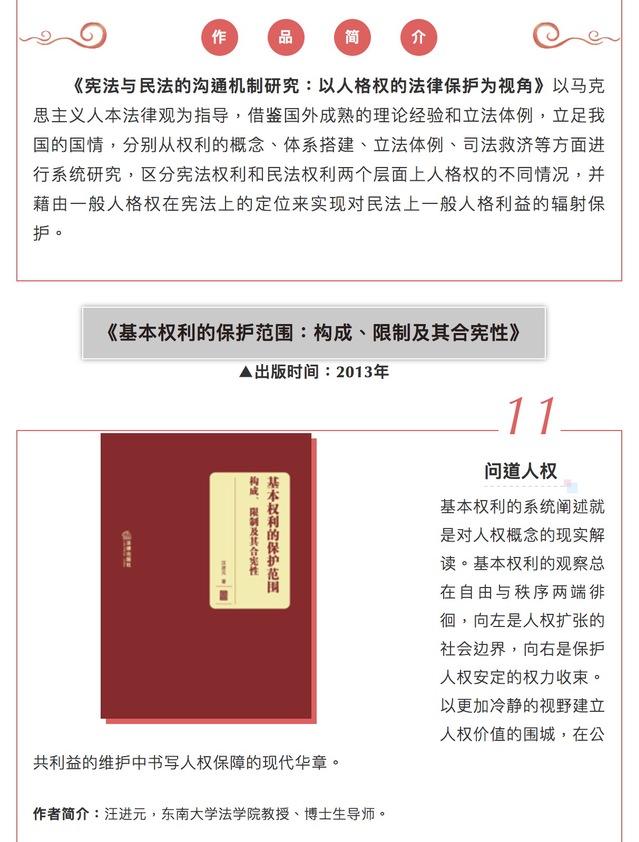 人权思想,源远流长,他日松间涓流,今日江河汇荡,波澜翻涌,人间涤荡。十三年前共结一心,yl23455永利官网与法律出版社试以“为人民传播法律”之宗旨叩问人权。捉笔金陵,扬子江畔,东南法学砥砺奋进,穷究学海彼岸。法律出版社是东南法学引领人权新潮的见证人,亦是东南法学纵浪大化的渡舟者。为助读者领略东南法学的人权脉搏,探访法律社中的人权新潮,展现东南法学人的人权素养,特以“人权篇”为主题,回首往昔笔墨,复沉旧日思绪,再酌人权价值。