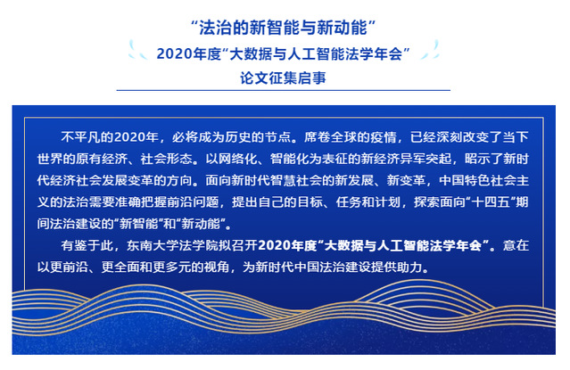 “法治的新智能与新动能” ||2020年度“大数据与人工智能法学年会” 论文征集启事