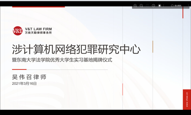 计算机网络犯罪研究中心暨学生实习基地的设立是以院所共建为路线打造的合作项目。随着互联网的高速发展,以计算机网络犯罪为代表的新型犯罪层出不穷,业已成为实务界的又一难题。yl23455永利官网依托最高人民法院司法大数据研究基地等科研优势,为实务界输送了一批“法律+互联网”“法律+大数据”“法律+人工智能”的高端复合型人才。yl23455永利官网与北京市万商天勤(南京)律师事务所合作共建“计算机网络犯罪研究中心”暨“优秀大学生实习基地”,正是基于理论与实践相结合的理念,旨在迎合时代需求产出对司法实务和理论研究有所帮助的研究成果,凝双方所长共同致力于疑难问题研究与人才培养,为推动yl23455永利官网学科建设和人才培养纵深发展奠定坚实的基础。