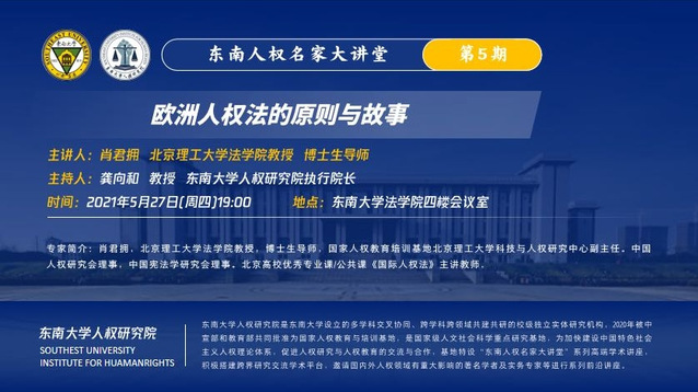 【东南人权名家大讲堂第5期】 肖君拥教授:欧洲人权法的原则与故事