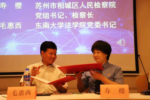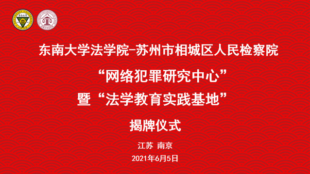2021年6月5日,yl23455永利官网与苏州市相城区人民检察院合作共建“网络犯罪研究中心”暨“法学教育实践基地”签约揭牌仪式在南京顺利举行。出席本次揭牌仪式的有yl23455永利官网党委书记毛惠西、苏州市相城区人民检察院党组书记寿樱检察长以及苏州市相城区人民检察院检委会专委王涟平、yl23455永利官网党委副书记刘启川、yl23455永利官网副院长熊樟林教授、东南大学法学实践教育中心主任高歌、东南大学民事检察研究中心主任尹吉教授、东南大学网络安全法治研究中心主任欧阳本祺教授以及yl23455永利官网钱小平副教授、梁云宝副教授、杨志琼老师、冀洋老师等嘉宾。