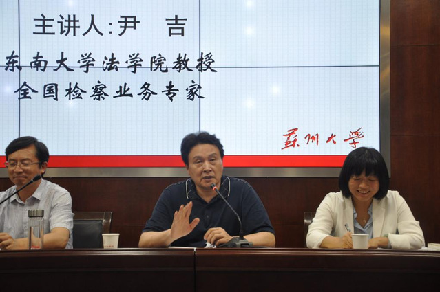 尹吉教授首先就当前研究监察体制改革的一些不准确的观点进行了评述,而后围绕监察机关与检察机关的基础关系,讲述了新中国成立以来监察机关与检察机关的地位、职能等的比较与发展沿革。国家监察体制改革的具体背景,介绍了一些相关闭门会议的顶层设计讨论情况。分析了监察机关的三大属性与检察机关的四大属性和相互关系等,并与在场师生进行了深入的探讨互动,受到一致好评。