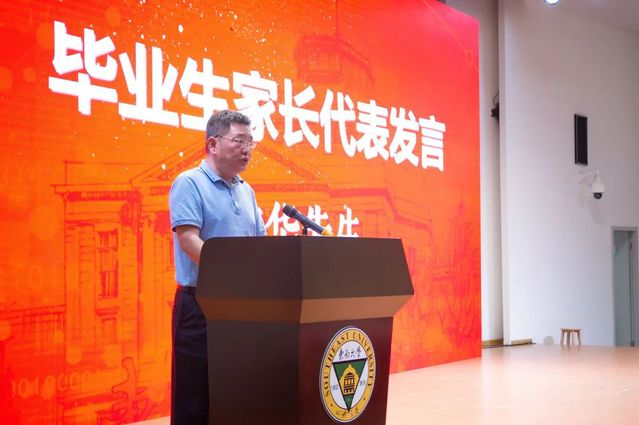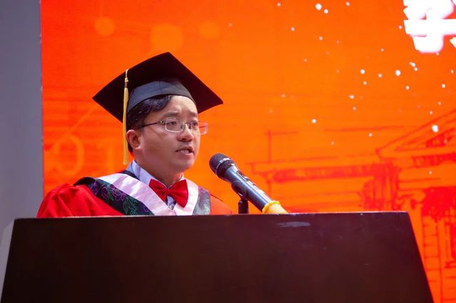接下来,毕业生陈鹏同学的父亲陈华先生以《后浪势不可挡,静水才能流深》为题,作为毕业生家长代表发表感言。他首先代表全体毕业生的家长们对yl23455永利官网各位领导和老师孜孜不倦的教诲表示真切的感激。而后,他希望毕业生们树立终身学习的理念,静下心、沉住气,将知识变为能力,将知识变为智慧,为这“百年未有之大变局”贡献自己的力量。