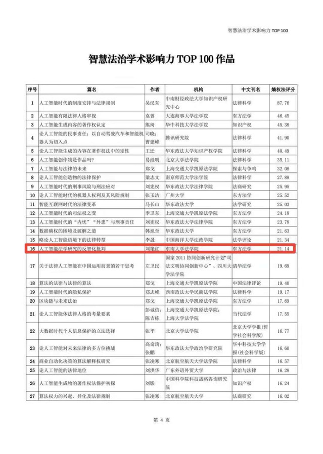 2021世界人工智能大会法治青年论坛首发《智慧法治学术影响力TOP(2021)》,遴选了智慧法治学术影响力 TOP100作品、智慧法治学术影响力 TOP100作者、智慧法治学术影响力 TOP100期刊。我校法司法大数据团队在智慧法治领域学术实力强劲、学术影响力处于前列,成功入选三项榜单,学术影响力大幅提升。