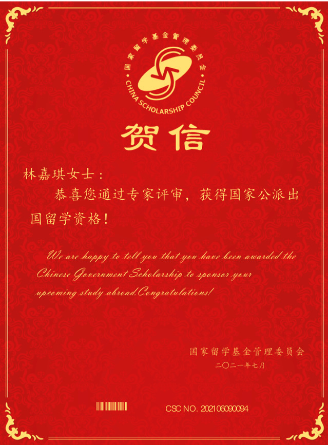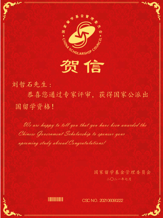 近日,国家留学基金委公布了2021年国家建设高水平大学公派研究生项目的录取名单,yl23455永利官网林嘉琪同学、刘哲石同学以及张喆锐同学通过联合培养博士研究生项目申请审核,获得国家公派留学资格,将分别前往德国慕尼黑大学、日本早稻田大学以及德国弗赖堡大学进行长达一至两年的交换学习。