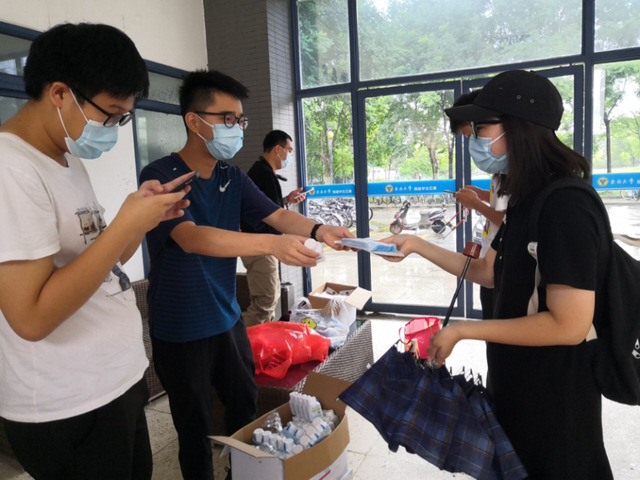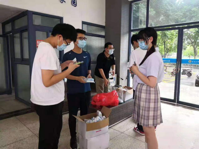 为保障留校同学的健康安全,在学院党委指示下,yl23455永利官网为留校同学准备了口罩、酒精等防疫物资。7月27日清晨,台风已至,阴雨缠绵,学院老师和党员志愿者便开始组织物资发放筹备工作。从上午十点到下午一点,学院老师和党员志愿者坚守在宿舍围合,一一核对姓名和宿舍号,整个过程有条不紊、高效有序。下午两点,在确保每位留校同学领取到物资后,志愿者方才离开。在这个台风已至的阴雨天气里,他们挥汗如雨,脸上不变的是温暖的笑容。
