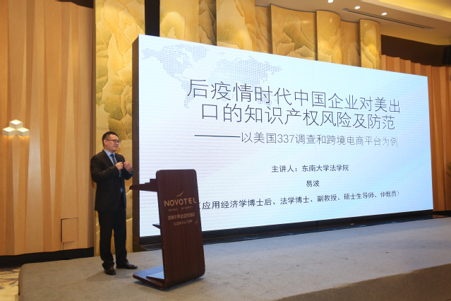 2021年9月22日,由中国(苏州)知识产权保护中心、国家海外知识产权纠纷应对指导中心苏州分中心主办的“一站保护 知心服务”知识产权保护圆桌会议在苏州举办。会议现场发布和解读了《企业参展知识产权风险防范规范》知识产权保护地方标准。为助力苏州企业从容应对海外知识产权纠纷,会议举办了“走出去”战略与知识产权纠纷应对的主题活动。yl23455永利官网副教授易波应邀参会并以“后疫情时代中国企业对美出口的知识产权风险及防范”为题作主题发言。