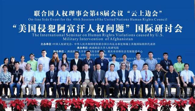 9月25日,联合国人权理事会第48届会议“云上边会”之“美国侵犯阿富汗人权问题”国际研讨会在重庆举行。该国际研讨会由中国人权研究会、中国常驻联合国日内瓦代表团主办,西南政法大学人权研究院承办,由西南政法大学人权研究院执行院长张永和教授主持。