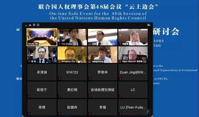 9月25日,联合国人权理事会第48届会议“云上边会”之“美国侵犯阿富汗人权问题”国际研讨会在重庆举行。该国际研讨会由中国人权研究会、中国常驻联合国日内瓦代表团主办,西南政法大学人权研究院承办,由西南政法大学人权研究院执行院长张永和教授主持。