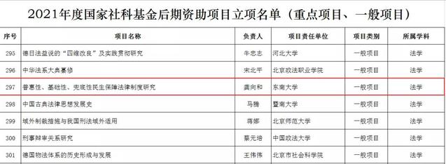 2021年度国家社科基金后期资助项目立项名单在全国哲学社会科学工作办公室网站公示,yl23455永利官网龚向和教授《普惠性、基础性、兜底性民生保障法律制度研究》项目喜获公示立项!