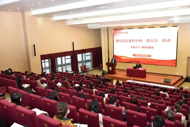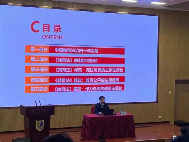 报告会上,龚向和教授围绕中国教育法治四十年发展、《教育法》的制定与修改、宪法与党的主张法律化、教育公平的法律保障、《教育法》的展望五个方面展开阐述。他强调,中国教育在发展,法治也在不断跟进。此次教育法修订,是贯彻落实党的十九大精神、全国教育大会精神的重要举措,是对教育基本法律制度的进一步完善。在“十四五”规划开局之年,要深刻认识《教育法》修订的重大意义,将新修订的《教育法》贯彻落实到教育工作的全过程和各方面,转化成深化教育改革发展、落实立德树人根本任务的生动局面。
