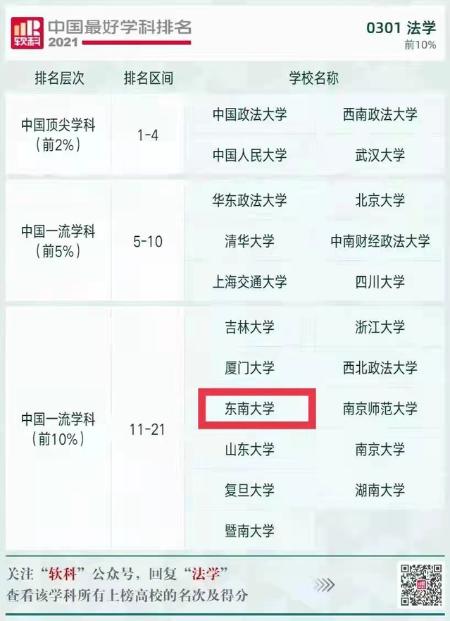 2021年10月25日,高等教育评价专业机构软科正式发布“2021软科中国最好学科排名”。排名榜单包括96个一级学科,共有486所高校的4992个学科点上榜。其中法学学科排名共有106所大学上榜,yl23455永利官网以258分的优异成绩位居前10%。