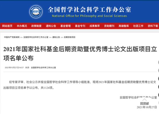 10月27日,全国哲学社会科学工作办公室公布了“2021年国家社科基金后期资助暨优秀博士论文出版项目”立项名单。yl23455永利官网刘艳红教授指导的刑法学博士毕业生魏超获2021年度国家社科基金优秀博士论文出版项目立项。