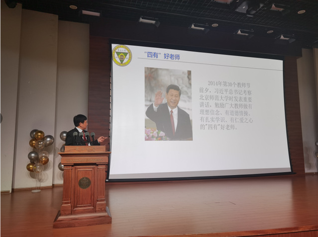 最后,毛惠西书记总结道:“人是要有点气象的,教育的质量说到底就是人的质量,是教师和学生的质量。从事教育的人就要有点气象。要自强不息,厚德载物,情怀博大,躬身践行,我们心中要经常有天地之气在回旋,让中华民族伟大复兴之气经常在胸中升腾,人就会高大起来,脊梁骨就会硬起来。当我们的老师正气凛然、德才全面提高的时候,学生就能终身受益,培养出来的人才质量就是最了不起的财富。让我们坚持理想就在岗位上,信仰就在行动中,锲而不舍,坚忍不拔,奋勇前进!”