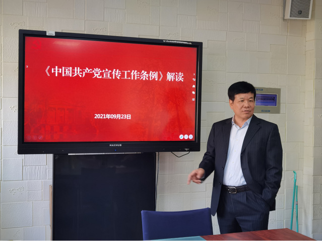 首先,毛惠西书记详细讲解了《中国共产党宣传工作条例》出台的背景及意义,指出《条例》的出台是当前我国政治环境、传媒生态,以及党和国家对宣传工作职责要求等因素综合作用的结果,它为中国共产党更好地领导宣传工作提供了制度保障和法律规范,对于促进党的宣传工作的科学化规范化制度化具有重要意义。《条例》的出台,是宣传领域的主干性、基础性党内法规,以刚性的法规制度为全党开展宣传工作提供了有力指导和支撑。