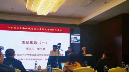 2021年11月7日,江苏省法学会环境资源法学研究会2021年年会在河海大学成功举办。来自南京大学、东南大学、苏州大学、河海大学等高校以及江苏省人大、江苏省高级人民法院、江苏省人民检察院等实务部门的60余名代表参加了会议。参会代表围绕《民法典》中“绿色条款”的具体实施、惩罚性赔偿、生态环境的司法治理、太湖水污染防治的政策和技术等问题展开热烈讨论。yl23455永利官网单平基副教授、刘明全副教授以及博士研究生闫妍、刘冠合应邀参加了会议。