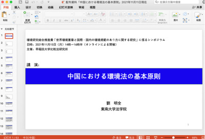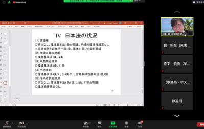 2021年11月15日下午,yl23455永利官网刘明全副教授应邀在日本早稻田大学作以“中国环境法中的基本原则”为主题的演讲(ZOOM线上),本次报告由早稻田大学比较法研究所主办。早稲田大学法学学術院大塚直教授、早稲田大学法学学術院森本英香教授(原日本环境省事务次官)担任此次演讲评议人。