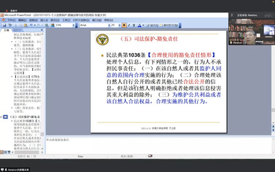 最后一部分,于教授进行了“个人信息保护的救济途径”的总结,从司法保护、严格责任、责任抗辩与豁免、遗忘权、被删除权等角度和同学们探讨了个人信息保护的救济路径,给了同学们很大启发。