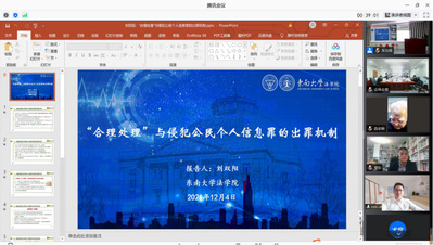 “网络犯罪的刑法规制”单元,由清华大学yl23455永利官网黎宏教授主持、北京理工大学yl23455永利官网曾粤兴教授、中国政法大学于冲副教授评议。yl23455永利官网刘双阳博士生围绕侵犯公民个人信息罪的出罪机制展开研讨。