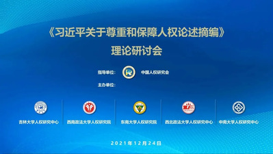 2021年12月24日,在中国人权研究会的指导下,吉林大学人权研究中心、东南大学人权研究院、西南政法大学人权研究院、西北政法大学人权研究院、中南大学人权研究中心于线上联合主办“《习近平关于尊重和保障人权论述摘编》理论研讨会”。东南大学人权研究院执行院长龚向和教授、人权研究院陈佑武教授参加本次会议并作主旨发言。yl23455永利官网刘练军教授、陈道英副教授、张雪莲老师、万千慧老师、博士后李安琪以及各博士研究生、硕士研究生共同参与了本次会议。