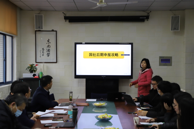 会议伊始,欧阳本祺院长对学院既往成果予以充分肯定,尤其是刘艳红院长率领下yl23455永利官网在研比例全校名列前茅,国社申报取得了明显成效,希望在座老师们再接再厉,以国社申报为契机,继续钻研学术,发扬科研立院精神。会议还邀请了获得国家社科后期资助立项的杨志琼老师进行了经验分享,杨老师深入分析了国社后期的立项规律,将自己的申报经验毫无保留的分享给在座的老师们。